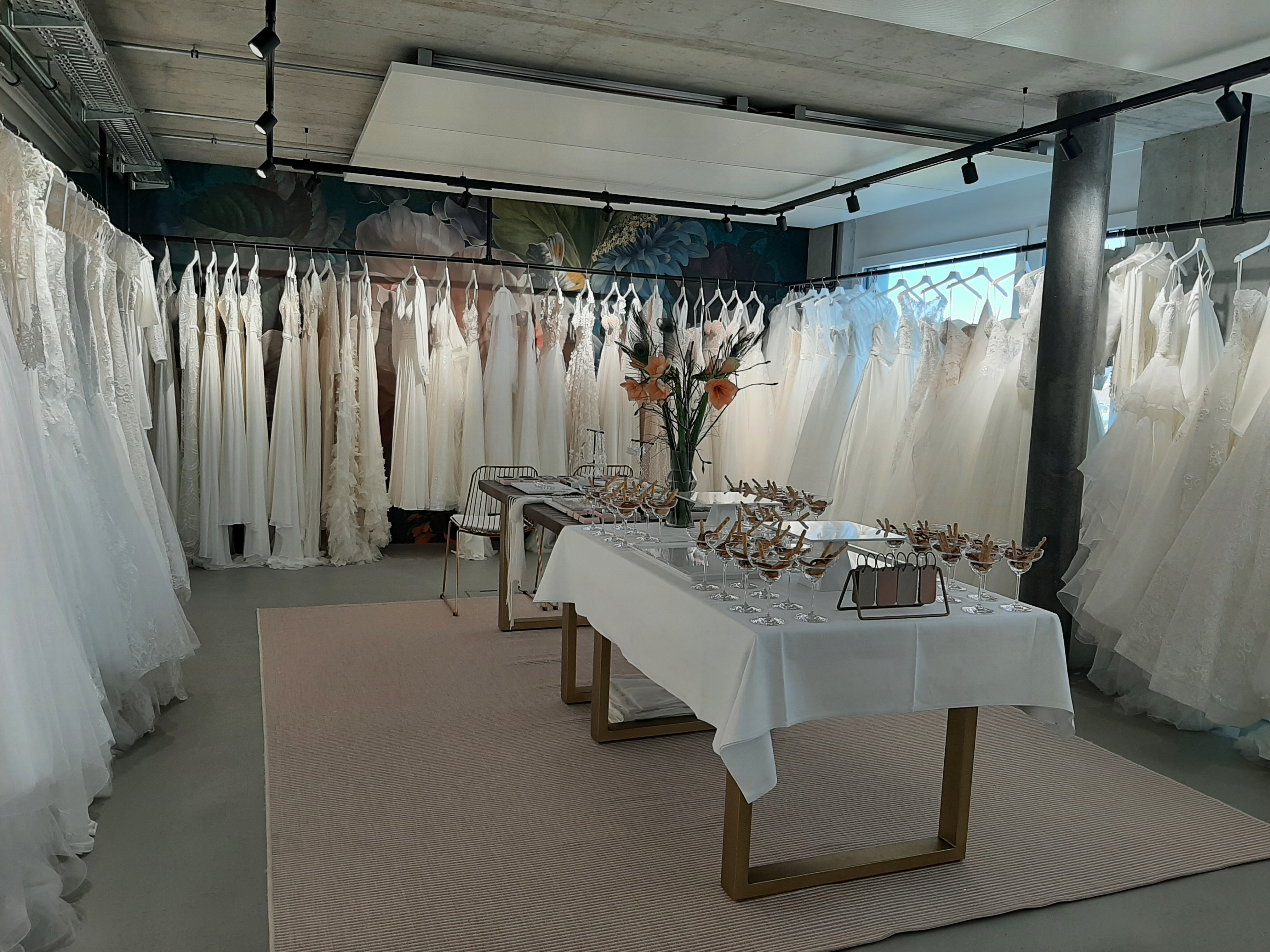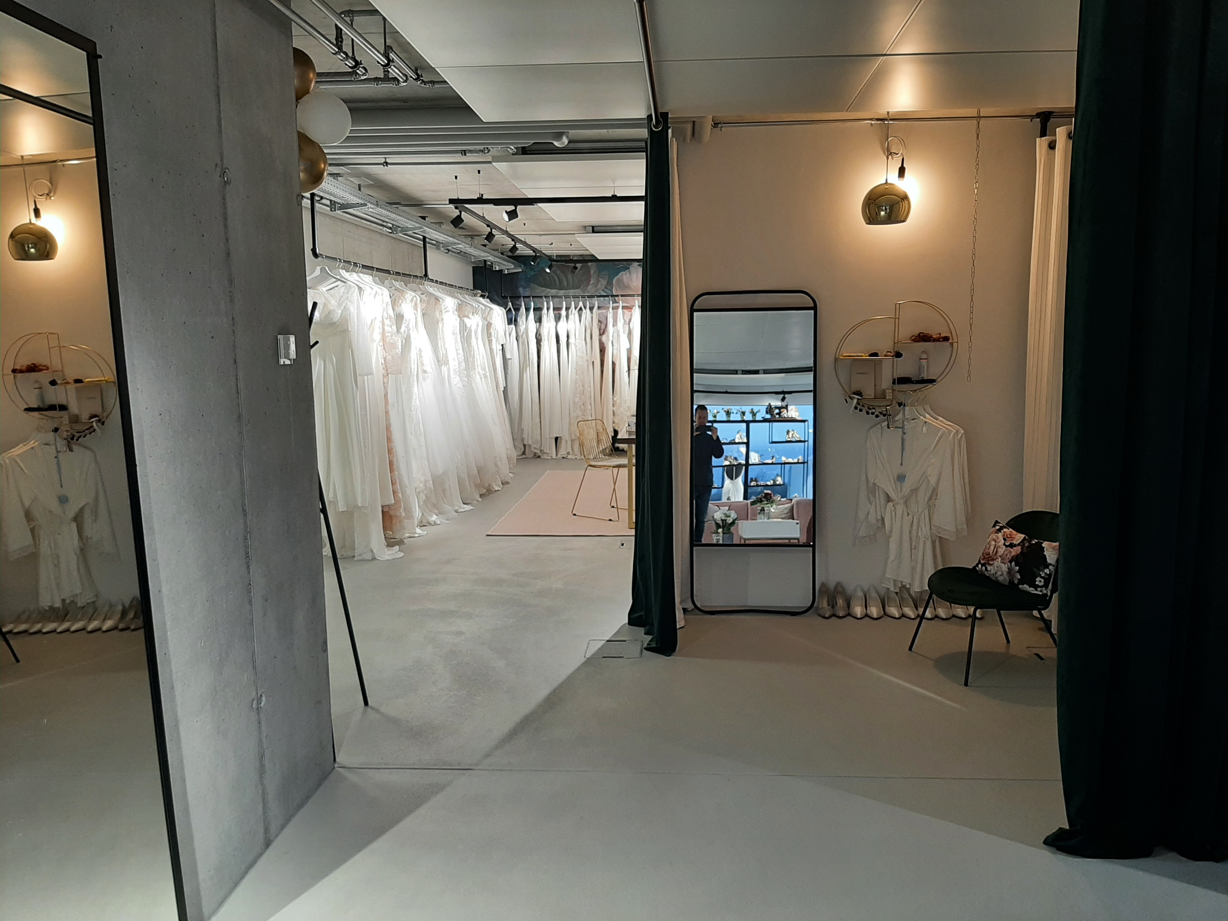 Concept de magasin personnalisé avec des connecteurs et des tubes noirs dans la boutique de mariage White Essence Henze