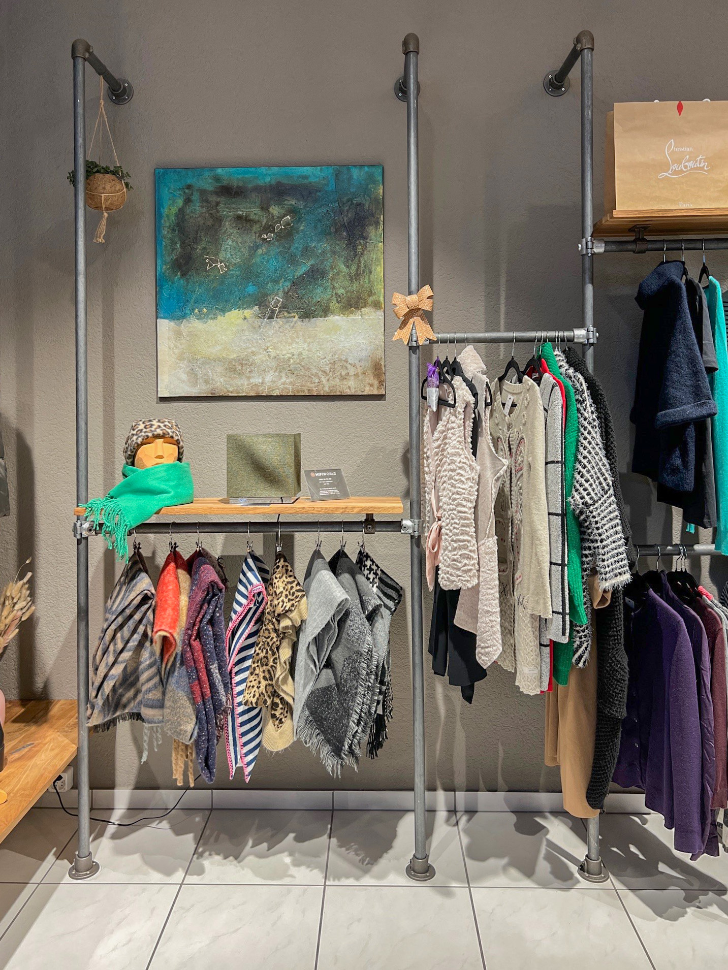 Le mobilier élégant de Proseco démontre la polyvalence de nos connecteurs de tubes. Avec Tuboconex, vous créez un design de magasin durable qui allie fonctionnalité et esthétique, parfait pour des concepts uniques comme ce magasin d'occasion. Laissez-vous inspirer!